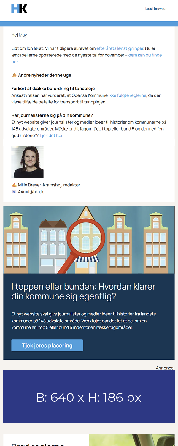Nyhedsbrevet er et yderst velegnet annoncemedie såvel selvstændigt som i samspil med HK Kommunalbladet.