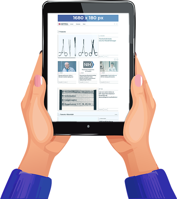 Materiale til bannerannoncering på topbanner og sidebanner på ugeskriftet.dk leveres som GIF, JPG eller HTLM – maks. 200 KB.